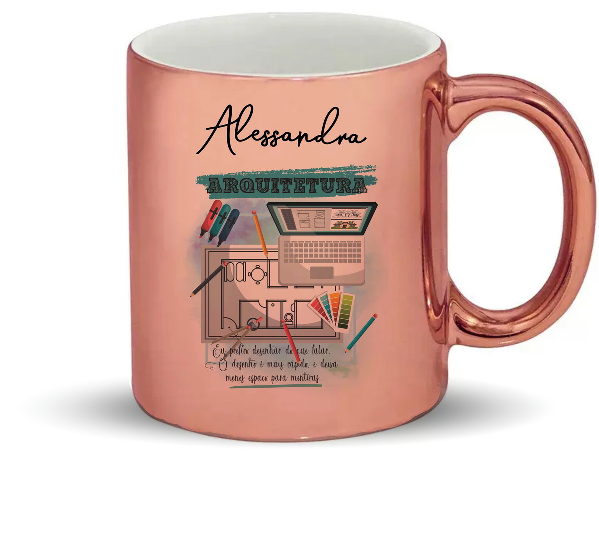 Linda caneca personalizada com seu nome e tema arquitetura. Excelente opção de presente aquela pessoa que ama a formação, boa para deixar em escritórios, salas de reunião ou até mesmo usar como porta objetos.