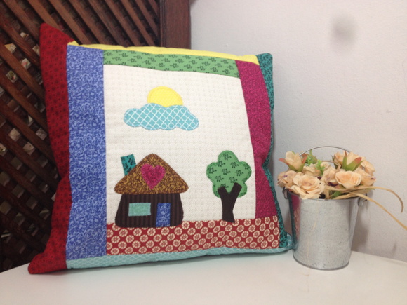 Capa Almofada Patchwork com Aplicações