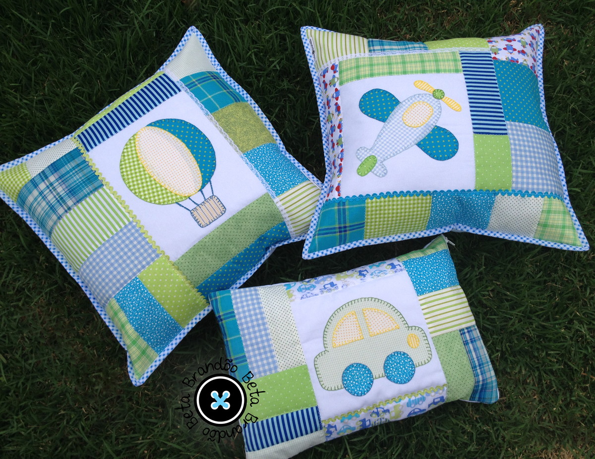 Capa para almofadas em Patchwork com bordados a mão, fechamento com botão cobertos em tecido (Sem enchimento).