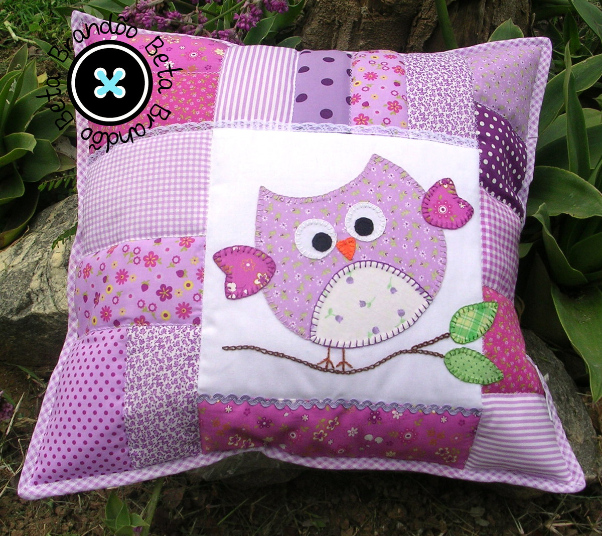 Capa para almofadas em Patchwork com bordados a mão, fechamento com botão cobertos em tecido (Sem enchimento).