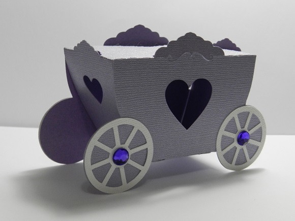 Caixa carruagem feita com papel perolado 180g.