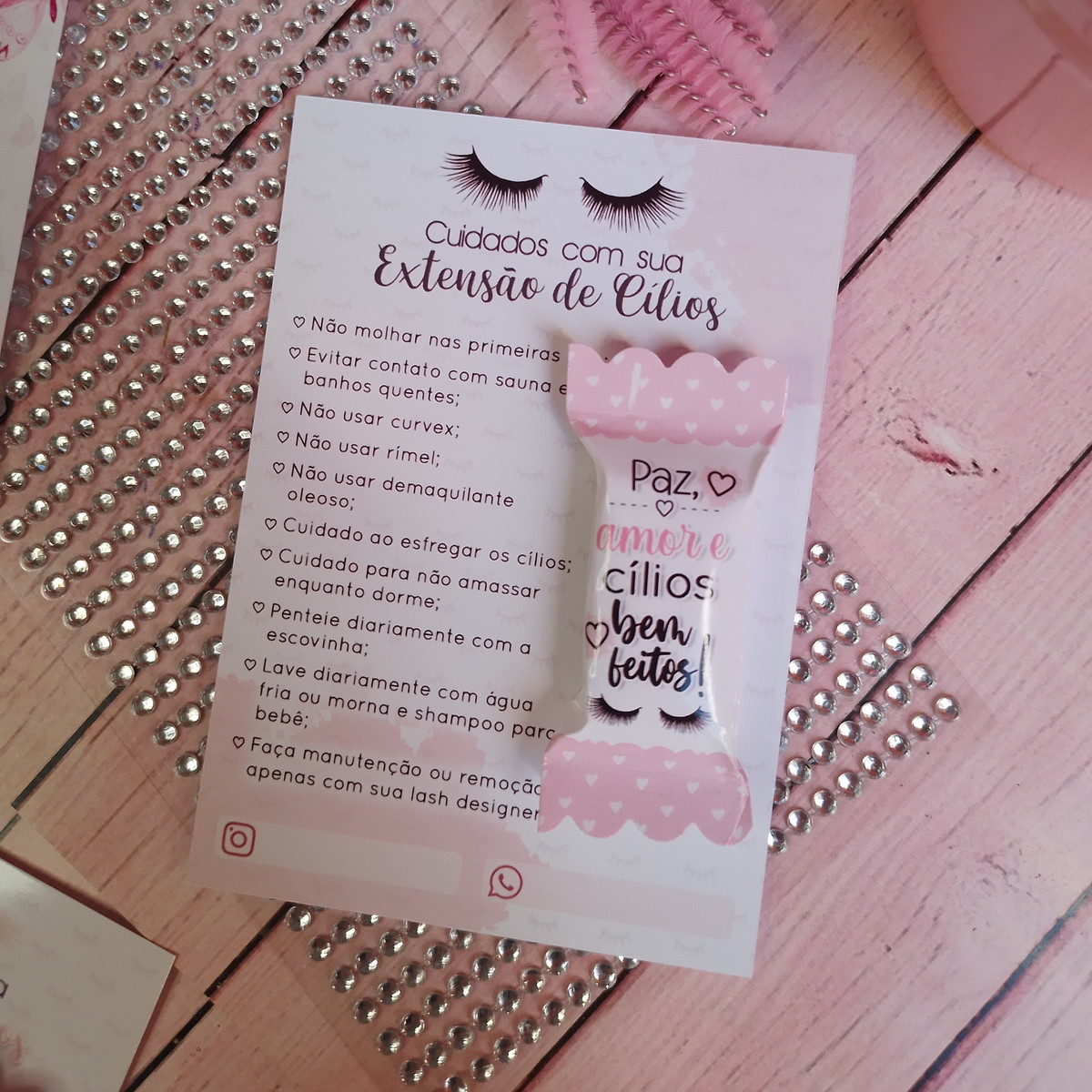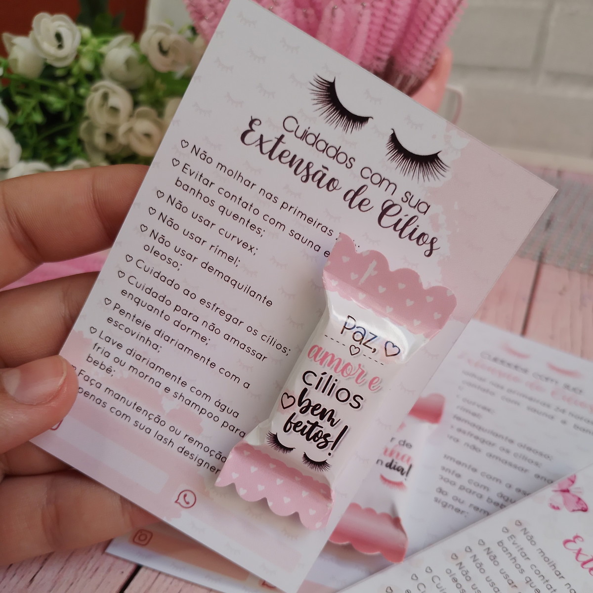 Cartão com Bala - Cuidados com Extensão de Cílios