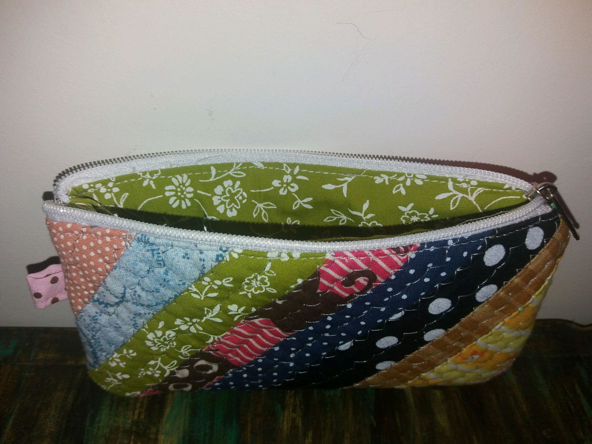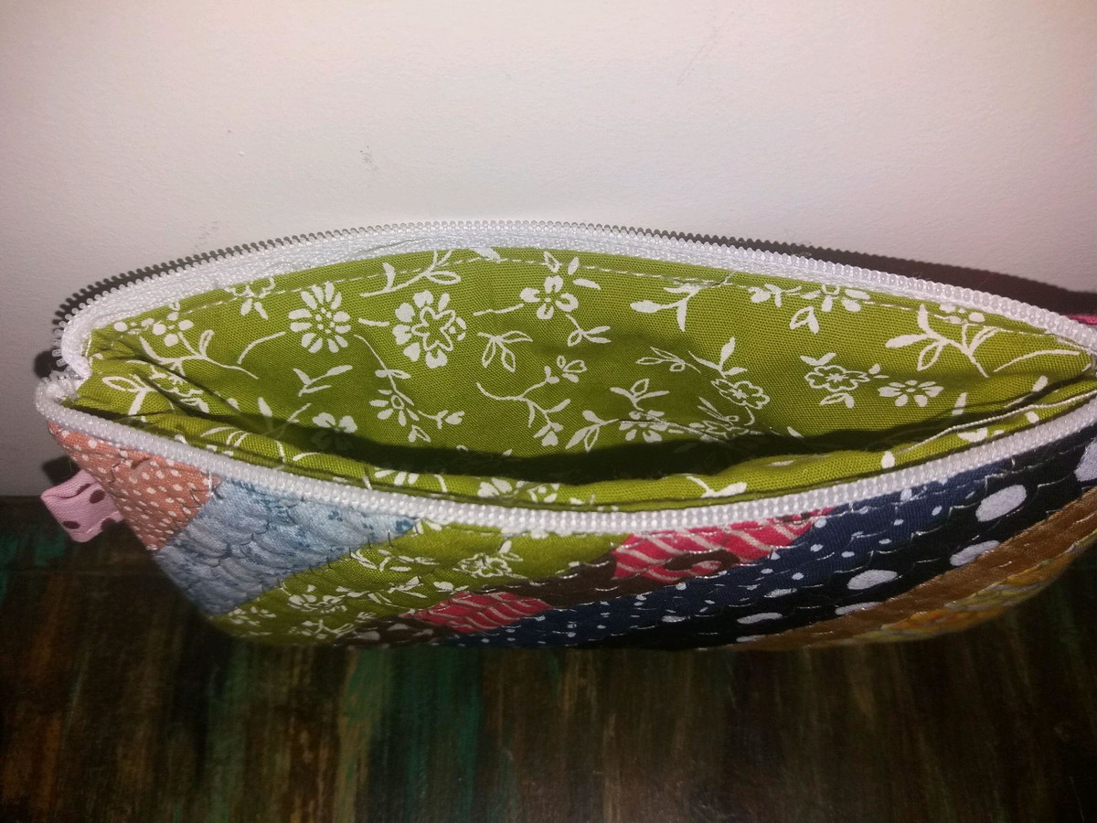 Linda carteira feita em patchwork. Fechamento com zíper.