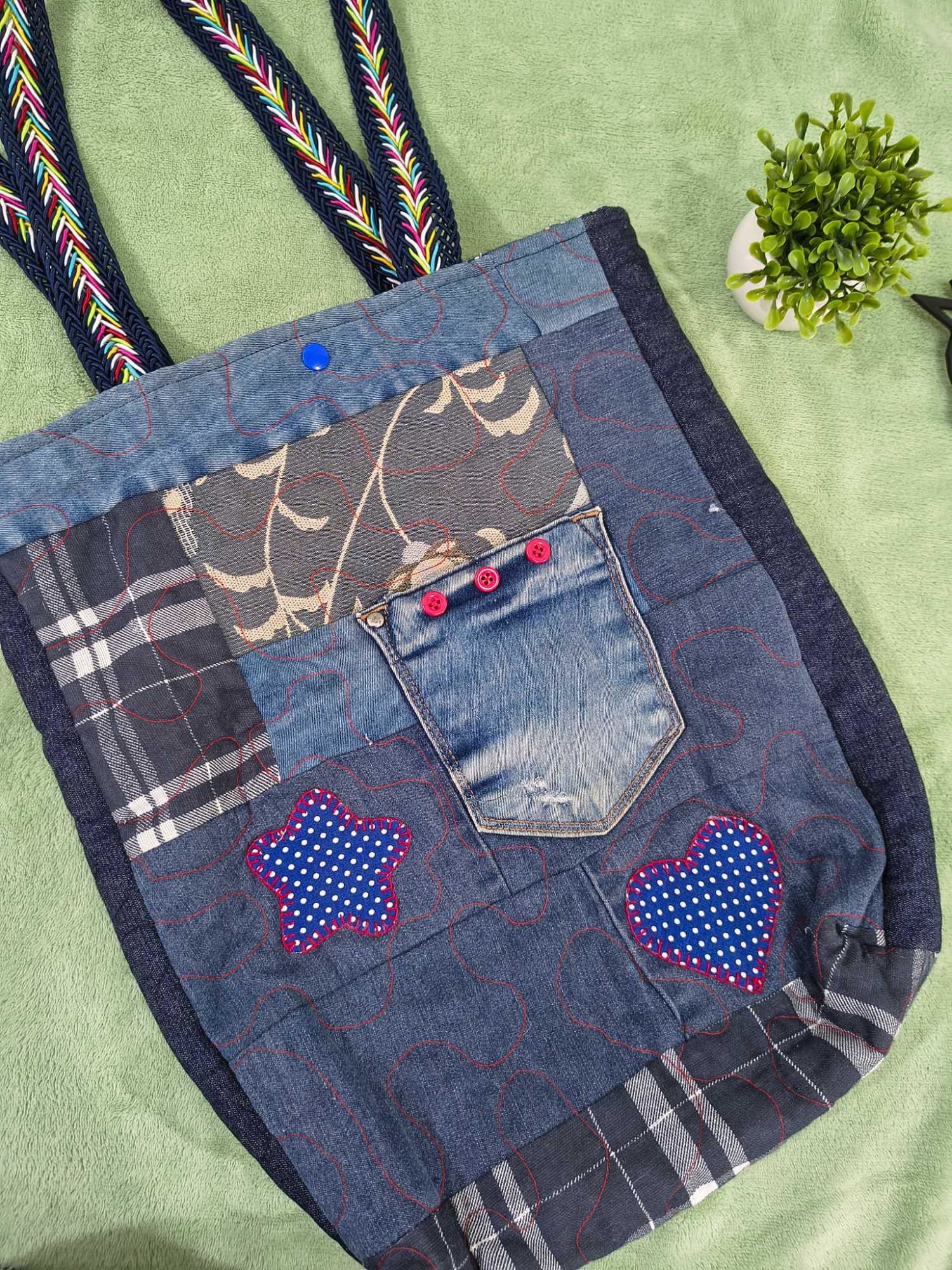 Bolsa Tipo Ecobag em Patchwork Jeans