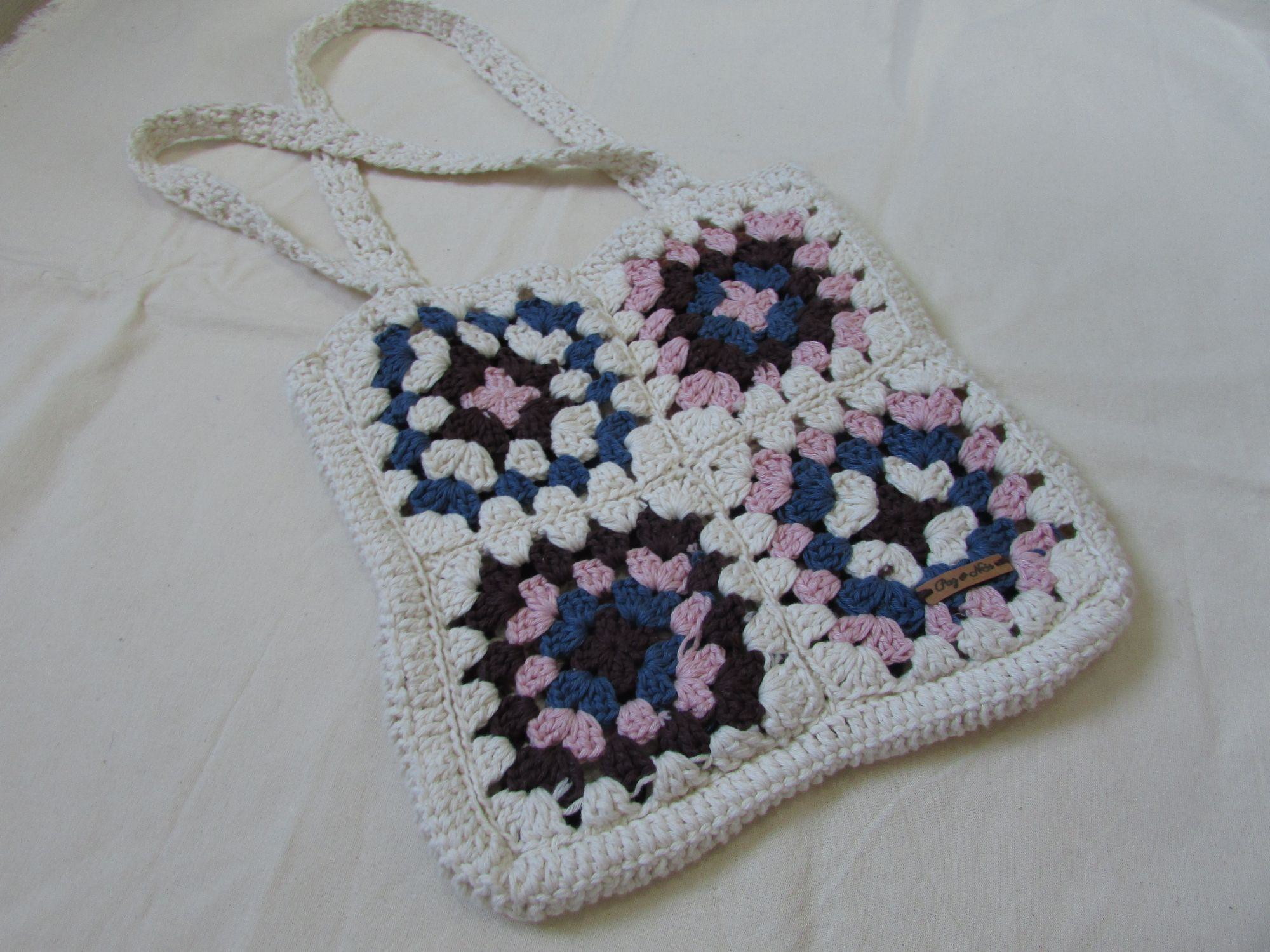 Bolsa Tote Heart Granny Square em Crochê Ecobag