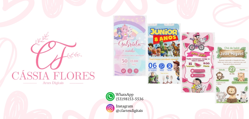 *ATENÇÃO: Os produtos são enviados apenas no formato digital, portanto não enviamos nenhum produto por correio ou qualquer outro meio!! Enviamos a arte apenas por e-mail ou whatsapp. Caso tenha alguma dúvida, por favor entre em contato pelo chat!! *** PREÇOS *** Nos reservamos o direito de alterações de preço nesta loja. Os valores aqui apresentados podem ser alterados a qualquer momento, sem aviso prévio. Caso tenha recebido uma encomenda e tenha optado por pedir mais itens posteriormente, caso este tenha sofrido alguma alteração no preço, o valor cobrado será o valor vigente no momento da sua compra. *INFORMAÇÕES IMPORTANTES: 1 - Aguardamos o site confirmar o pagamento para posteriormente realizarmos a arte desejada 2 - O cliente deverá enviar os dados que deseja no seu pedido logo após a finalização da compra e realização do pagamento 3 - Em no máximo 01 (um) dia útil após o envio dos dados, a arte será enviada ao cliente 4 - Como o produto trata-se de um arquivo digital, ele é enviado por e-mail ou WhatsApp nos formatos .PDF, .JPG ou .PNG. Vale ressaltar que a arte enviada não é editável pelo cliente, assim, certifique-se de mandar as informações certinhas 5 - Não encontrou o tema que estava procurando? Me chame através das minhas redes sociais para que possamos combinar direitinho a arte do jeitinho que você deseja (ATENÇÃO: o prazo de entrega para artes feitas 100% do zero é um pouquinho maior) HORÁRIO DE ATENDIMENTO: *Nosso horário de atendimento é de segunda à sexta-feira, das 10h às 18h. TEM ALGUMA DÚVIDA? Caso tenha alguma dúvida ou deseje solicitar mais informações, por favor, clique em contatar vendedor e deixe sua mensagem, irei te responder assim que possível <3 - Após o produto ser aprovado e a arte final ser enviada, não é possível realizar alterações. Caso seja necessário alterar algo, será cobrada uma taxa, ou caso opte, poderá fazer o pedido novamente Qualquer dúvida, entre em contato! Ficarei feliz em te auxiliar!! Obrigada pela preferência <3 Atenciosamente, Cássia Flores Artes Digitais <3