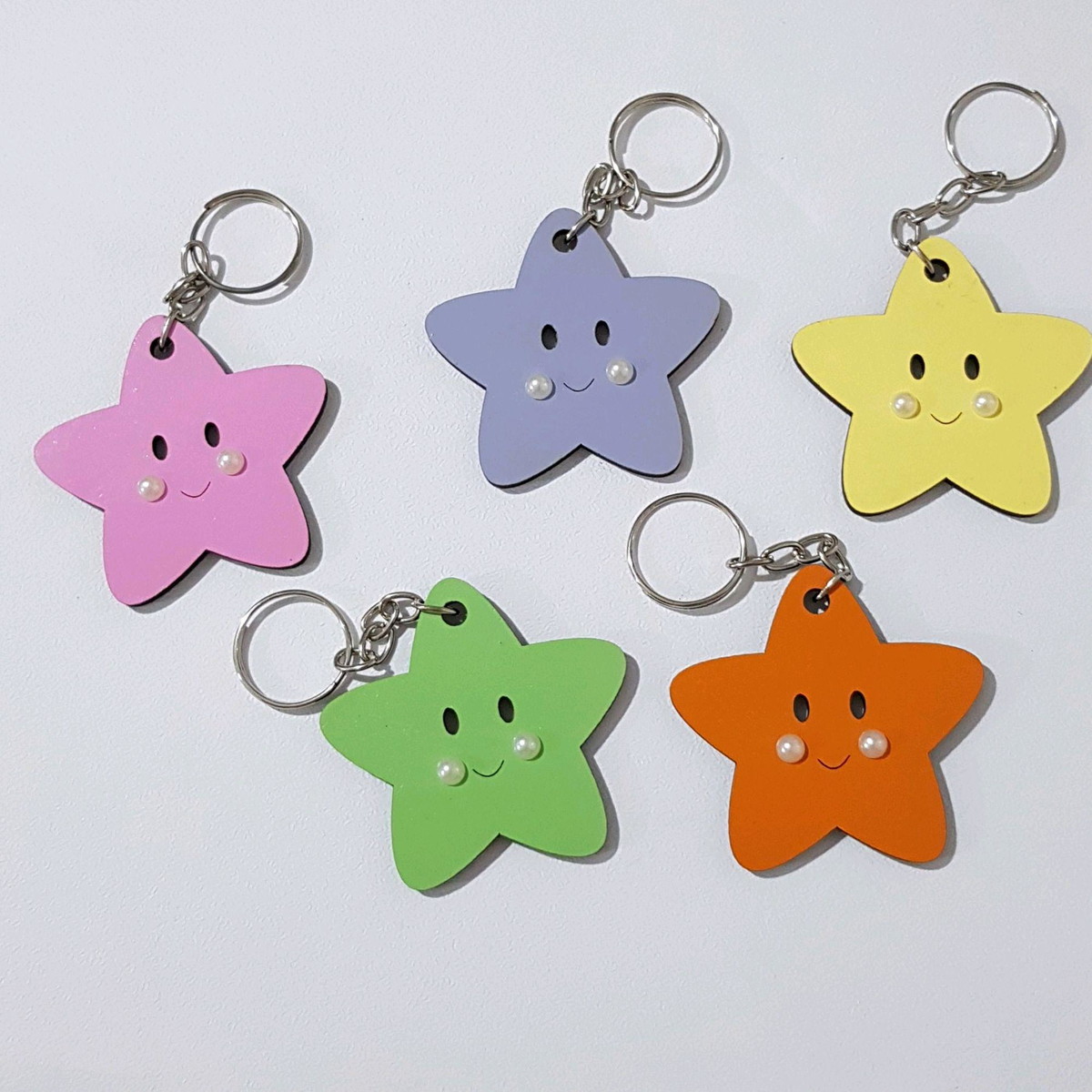 Que tal um lindo chaveirinho em formato de lua ou estrela com.uma bochechinha de pérolas?