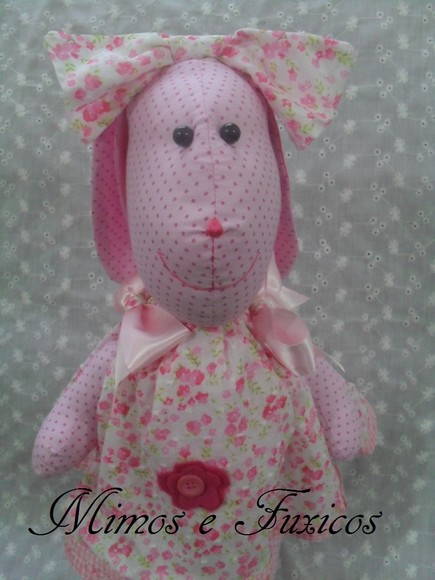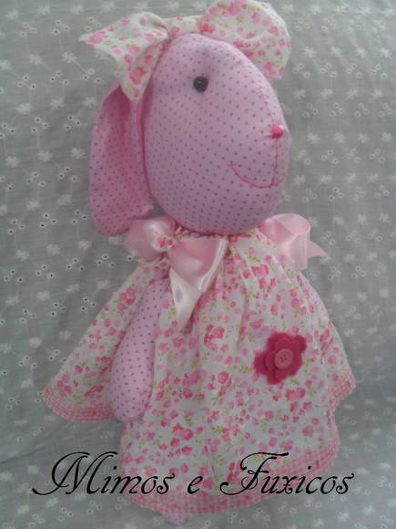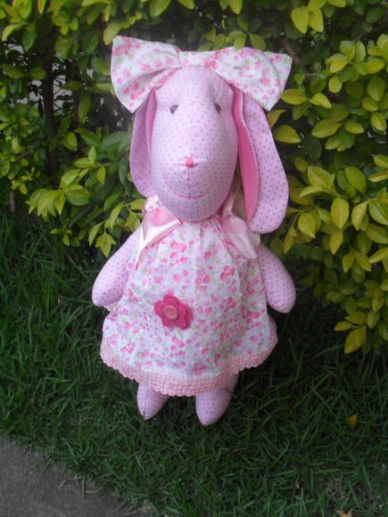 Coelha feita em tecido de algodão com enchimento em fibra.