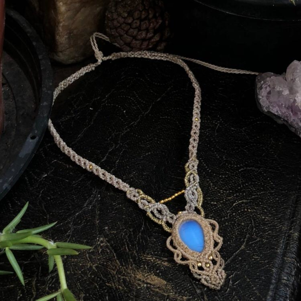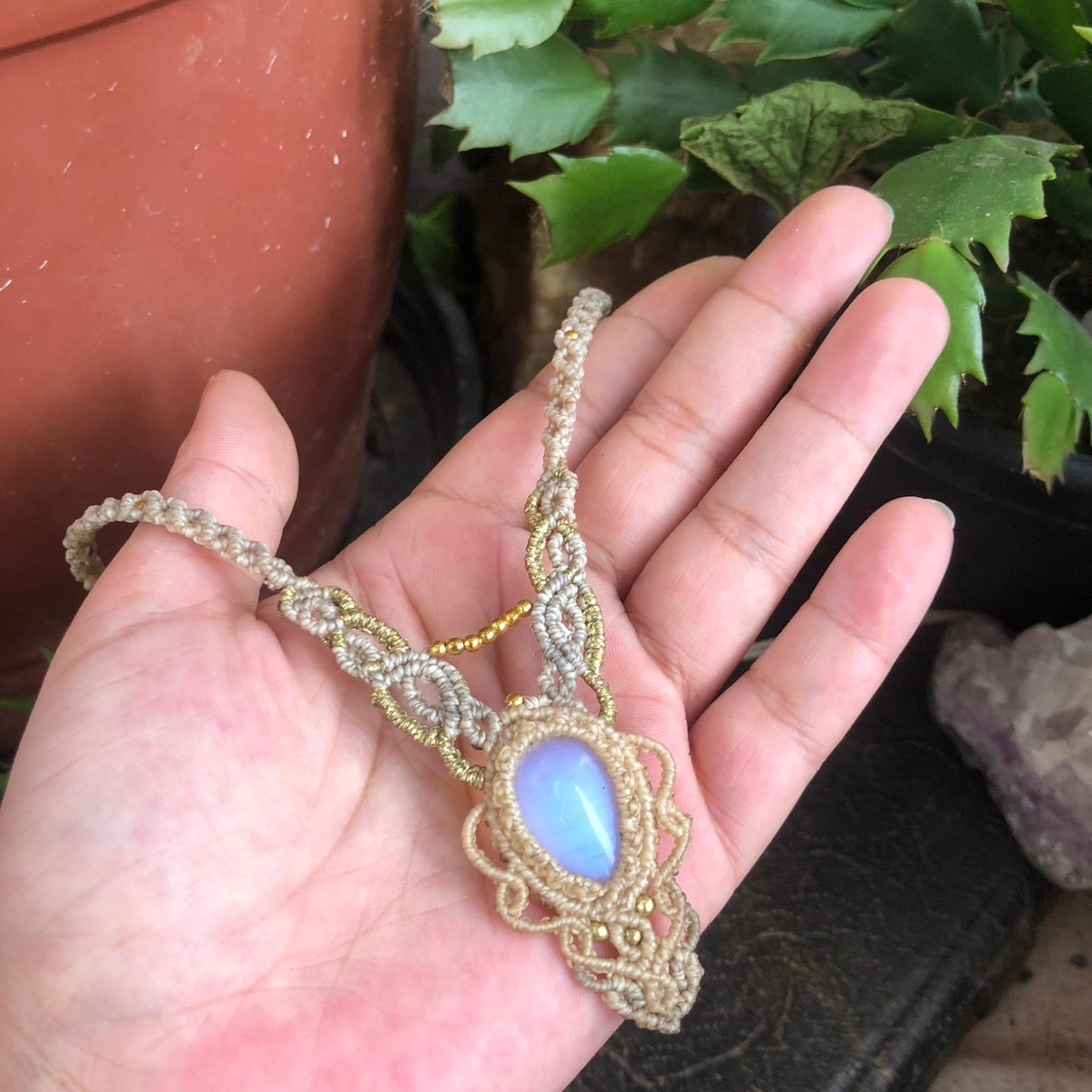 Colar em macramê com opalina.
