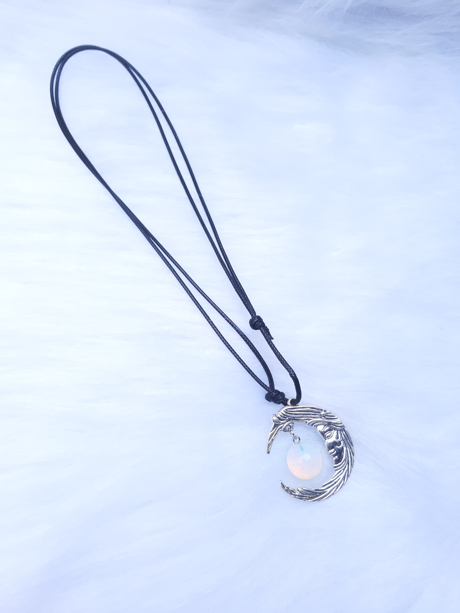 COLAR FACE DA LUA COM OPALINA OU PEDRA DA LUA.