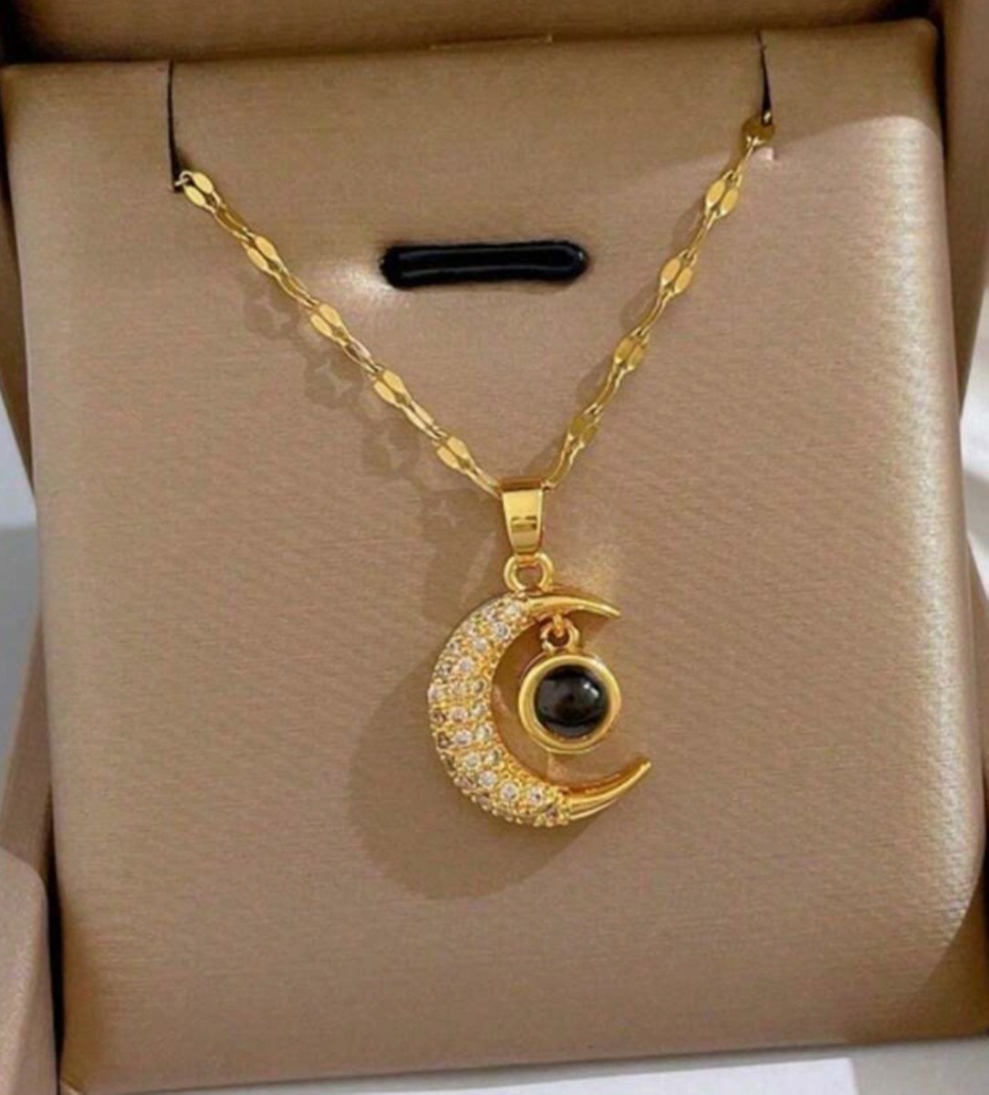 Colar Lua com projeção Eu Te Amo em 100 idiomas Aço Banhado a Ouro