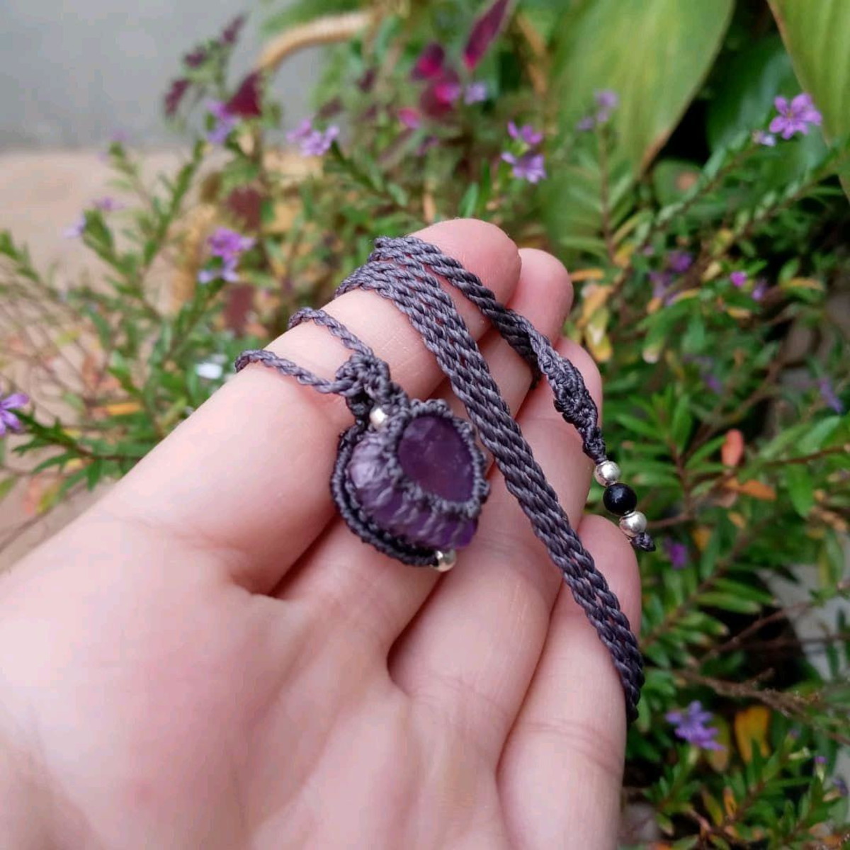 Colar em macramê com pedra natural Ametista.