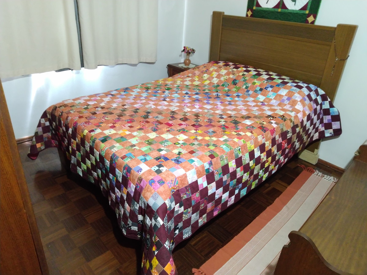Colcha de casal em patchwork. Tecido e forro de algodão, pré lavado. Com manta acrílica gramatura 80, quiltada.