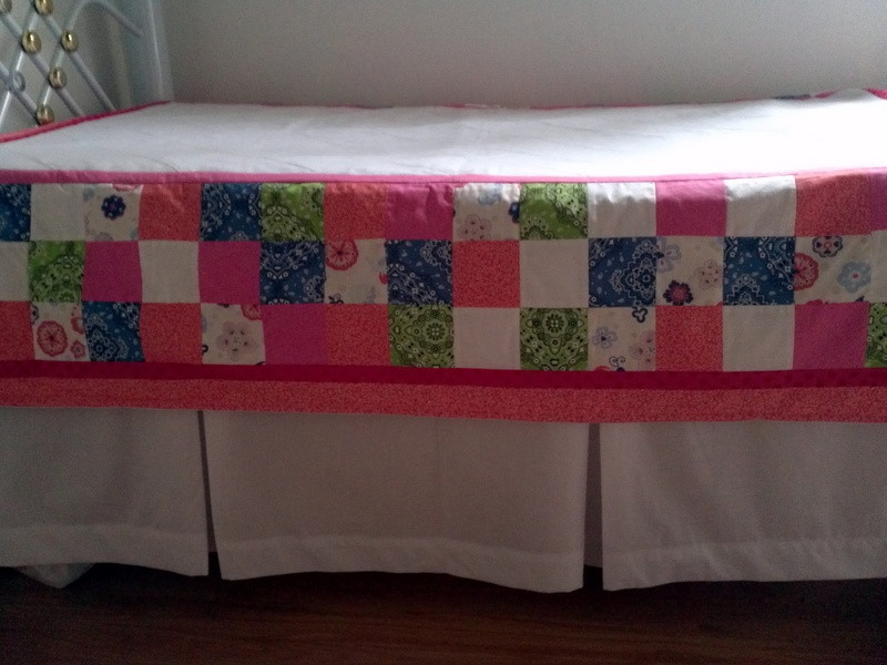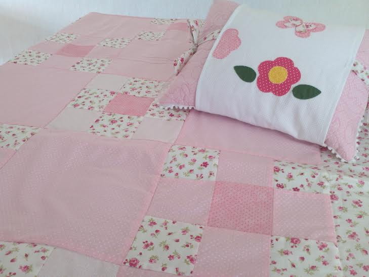 Colcha em patchwork tradicional, quiltada, tamanho berço americano, acompanha 1 almofada pequena.