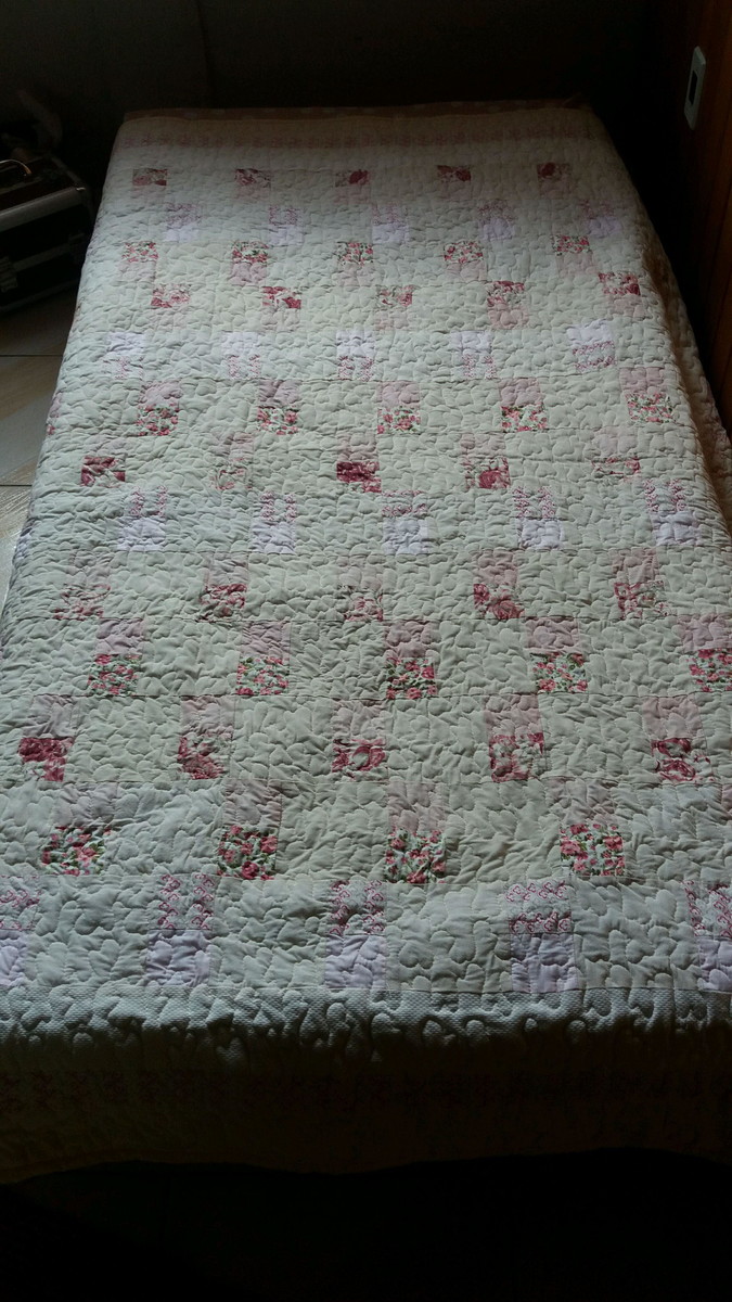 Colcha em patchwork, tecidos em algodão e enchimento de manta acrilica ,toda quiltada.