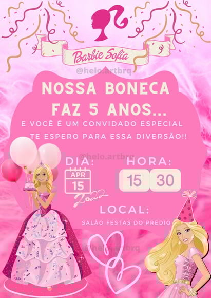 Karine Müller avaliou Convite Barbie - Convite. 13/04/2022 Suuuper atenciosa e prestativa!Adorei!Ficou lindo! ‹ › Facebook Twitter Link: copiar