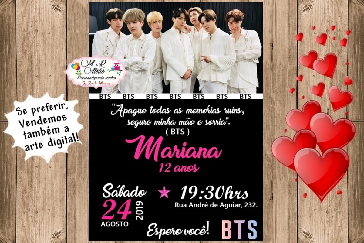 Convite Tema BTS, totalmente personalizado com os dados do aniversariante!!