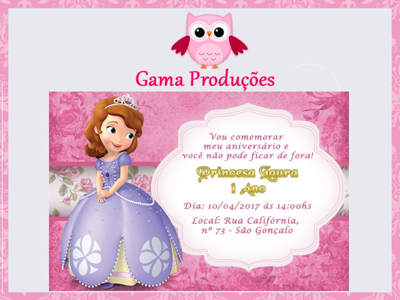 Rene Elias avaliou Convite Digital - Princesa Sofia - Ocasiao especial. 14/07/2017 Atendimento rapido Adorei o convite da minha filha ficou muito lindo😍😍😍 Obrigada ‹ › Facebook Twitter Link: copiar