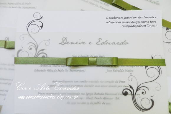 com envelope faixa em papel vegeta 115g. e com detalhes de arabescos.