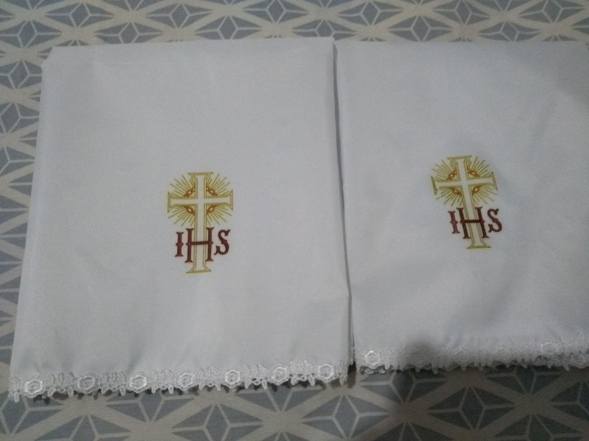 Corporal, imagem impressa, tamanho 50x50 tecido branco Cetim com bordas brancas, podendo ser também bordas vermelho,verde ou roxo