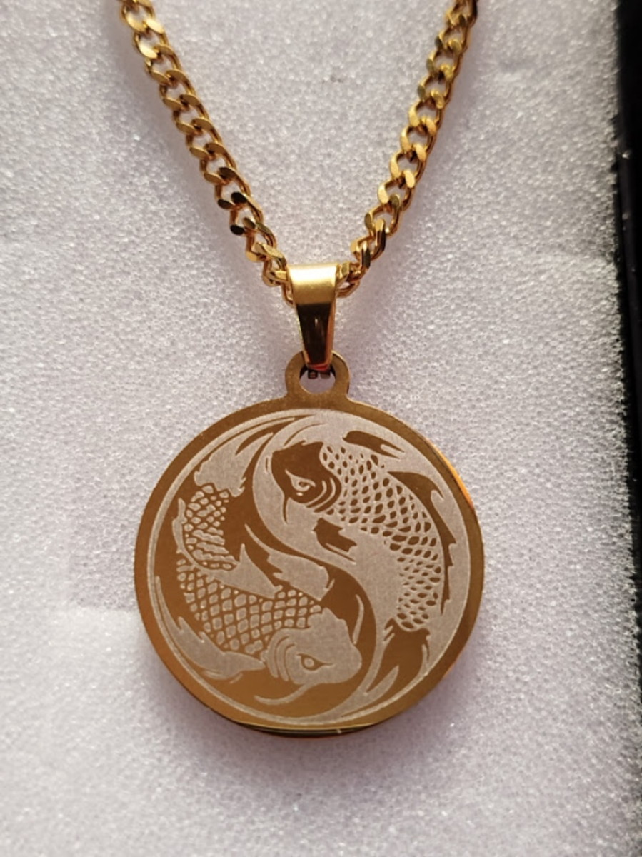 Corrente Grumet com Pingente Redondo com 2 Carpas