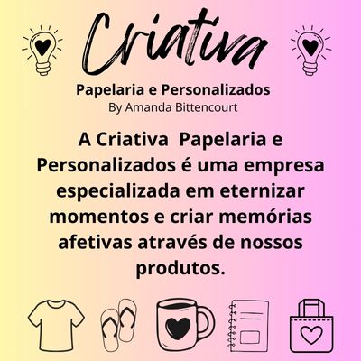 A Criativa Papelaria e Personalizados é uma empresa especializada em eternizar momentos especiais e criar as melhores memórias afetivas através de nossos produt...ver mais