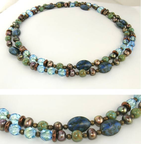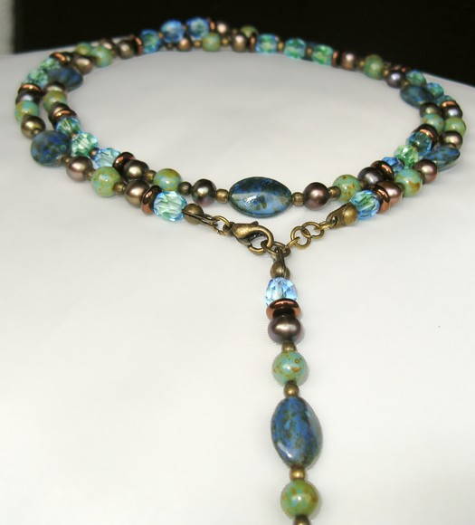 DEV007-1,5. Colar com pingente, medindo aproximadamente 60 cm. Material: Murano, pérola e crstal tcheco. R$ 50,00 + Frete.