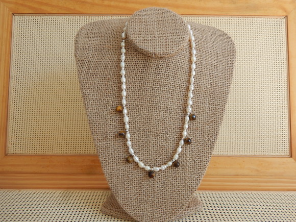 Colar Perolas e Olho de Tigre