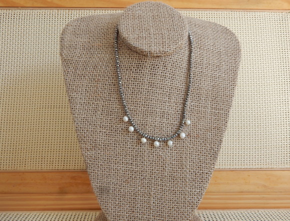 Colar Cristais Prata e Perolas