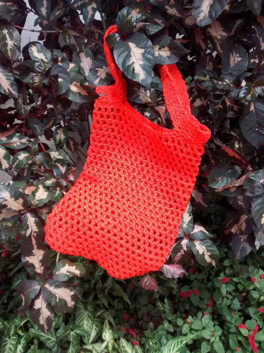 Ecobag em crochet confeccionada em barbante de algodão 8 fios cor laranja.