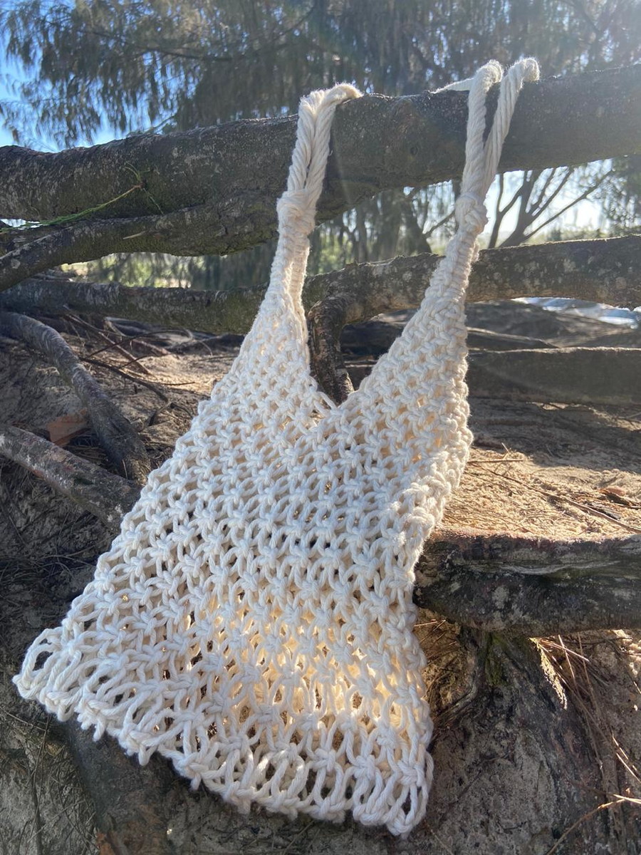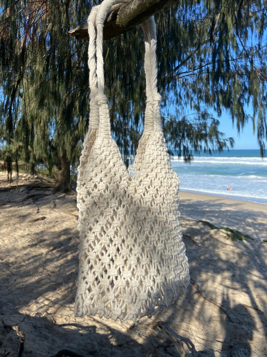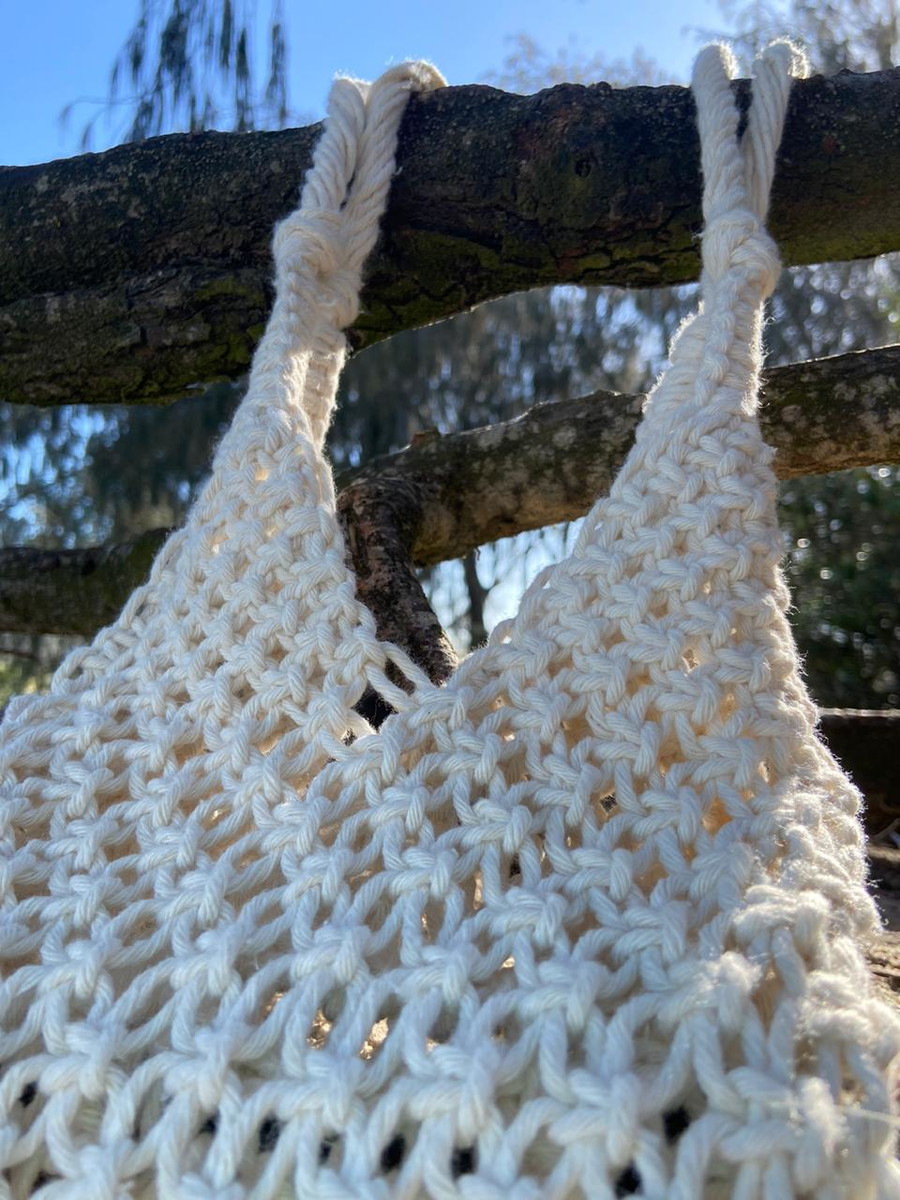 Ecobag em macramê feita mão, sem forro.