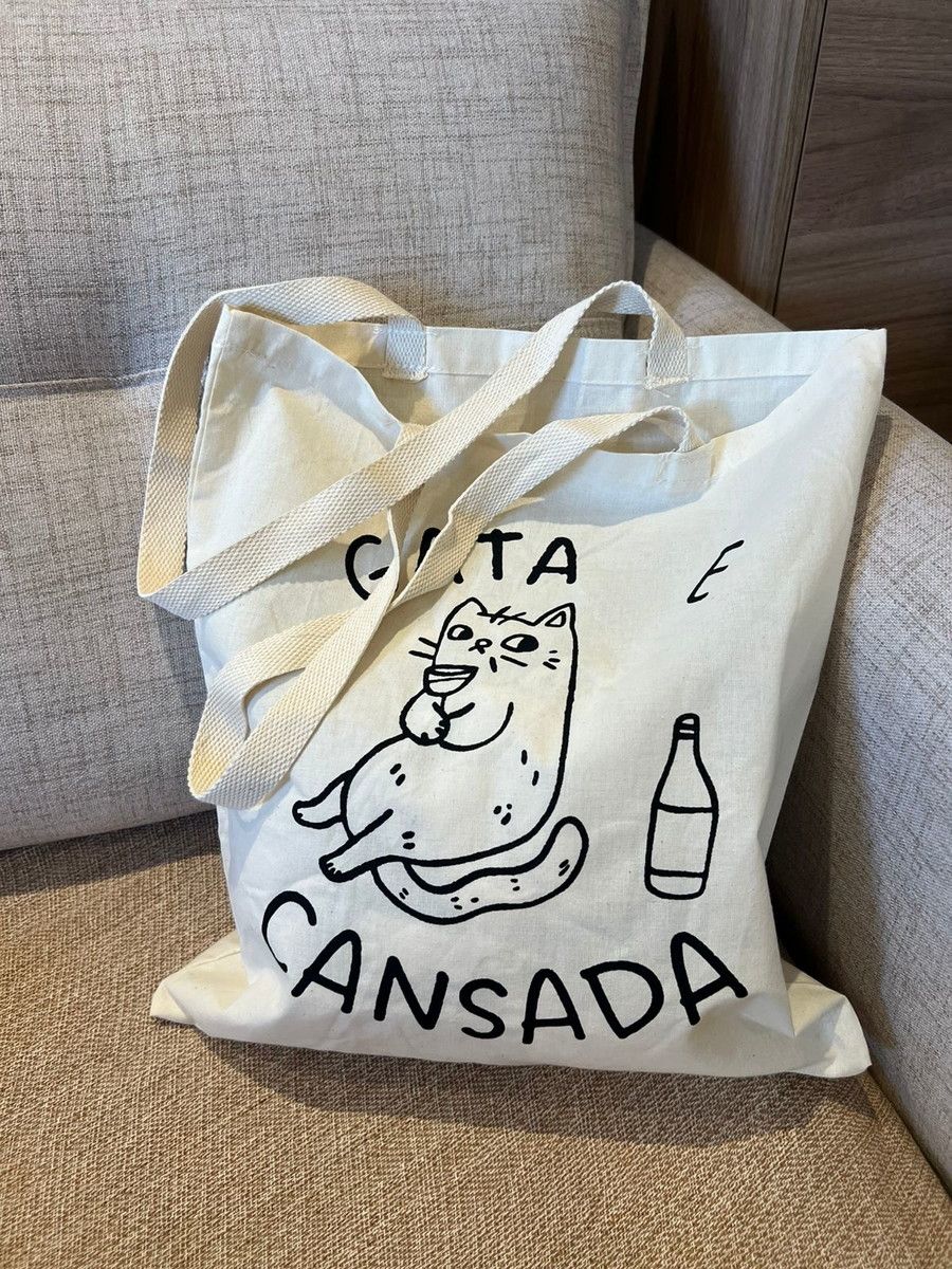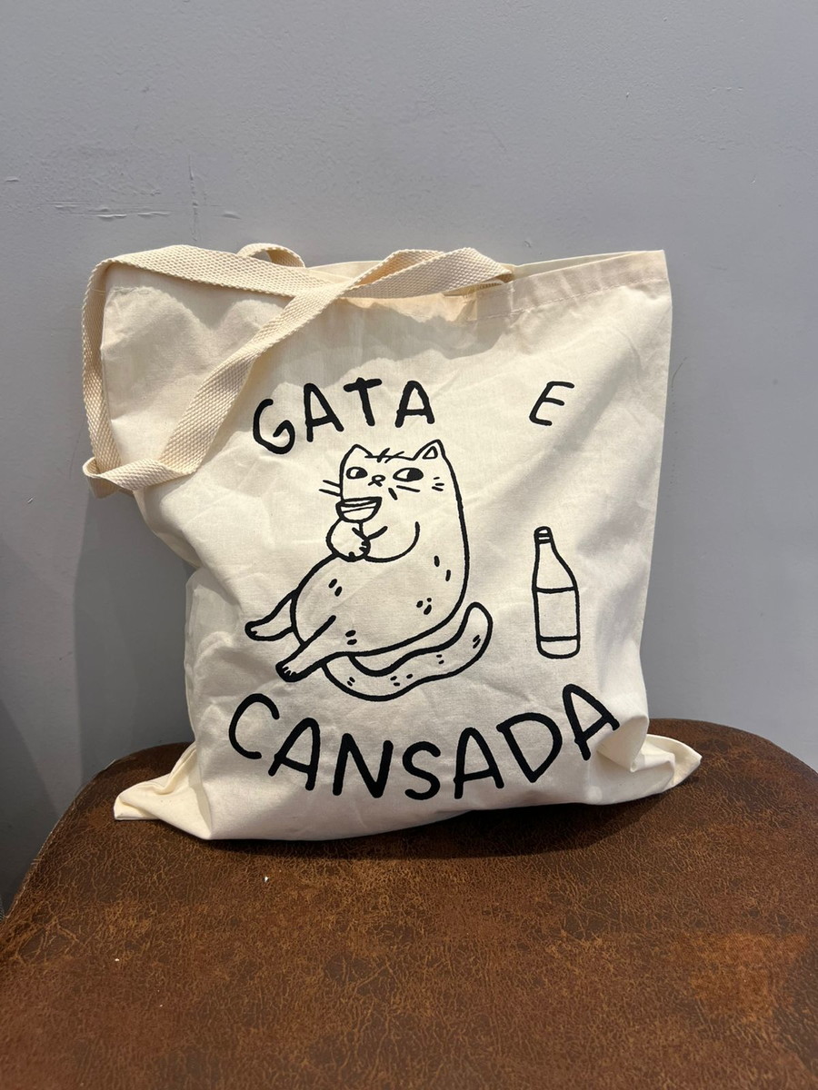 Ecobag espaçosa e resistente, perfeita pra quem é gata, cansada e cheia de compromissos, mas nunca perde o charme.
