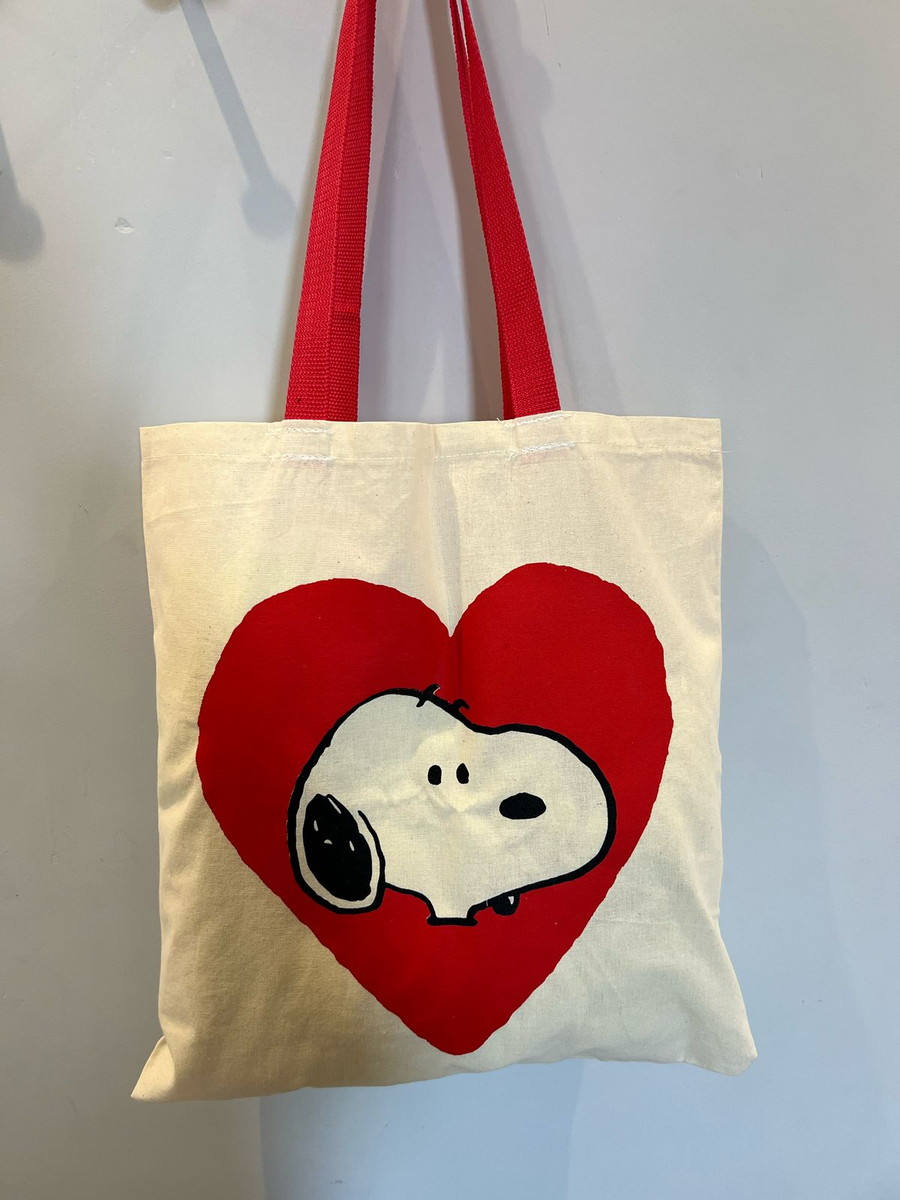 Ecobag espaçosa e resistente, com estampa do Snoopy, perfeita pra levar seus itens com praticidade e muito charme.