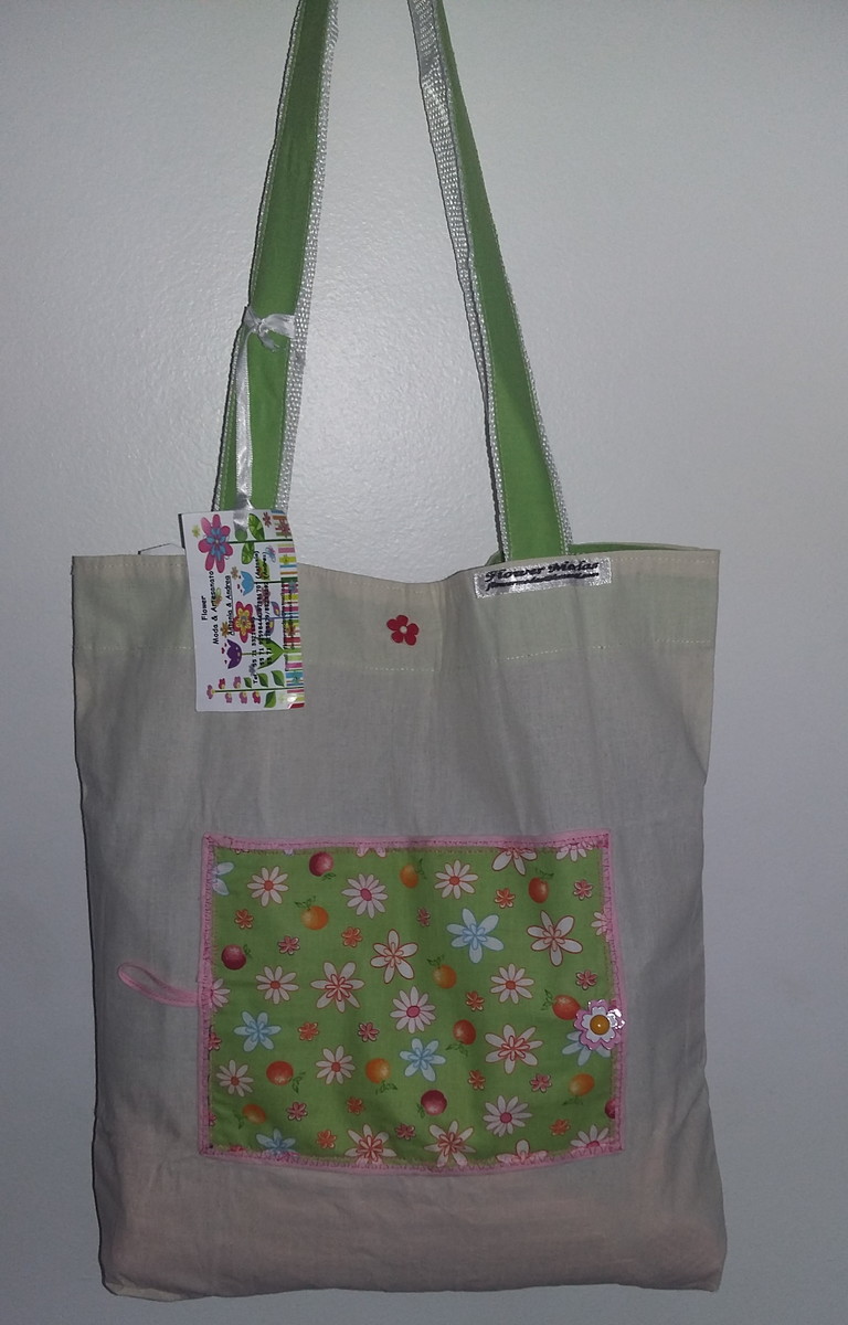 Bolsa em tecido crú dobrável, perfeita para levar na bolsa.
