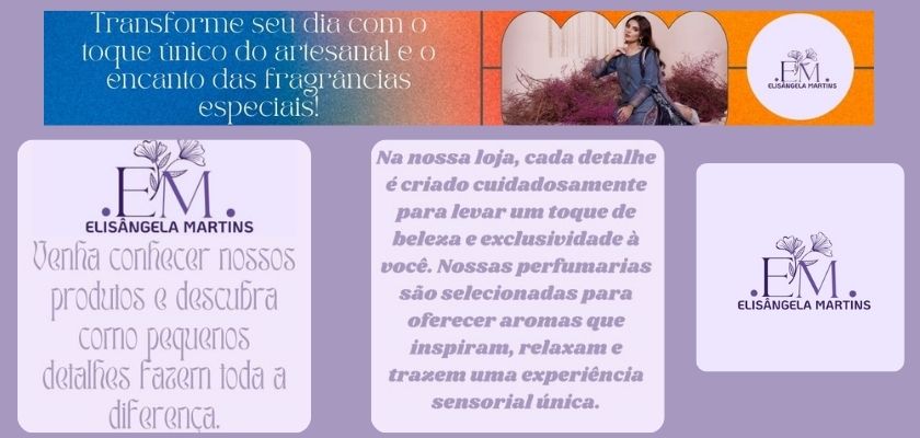 Bem vindo à nossa loja de presentes e perfumes artesanais! Aqui, cada produto é feito com carinho para tornar cada momento especial. Oferecemos uma seleção únic...ver mais