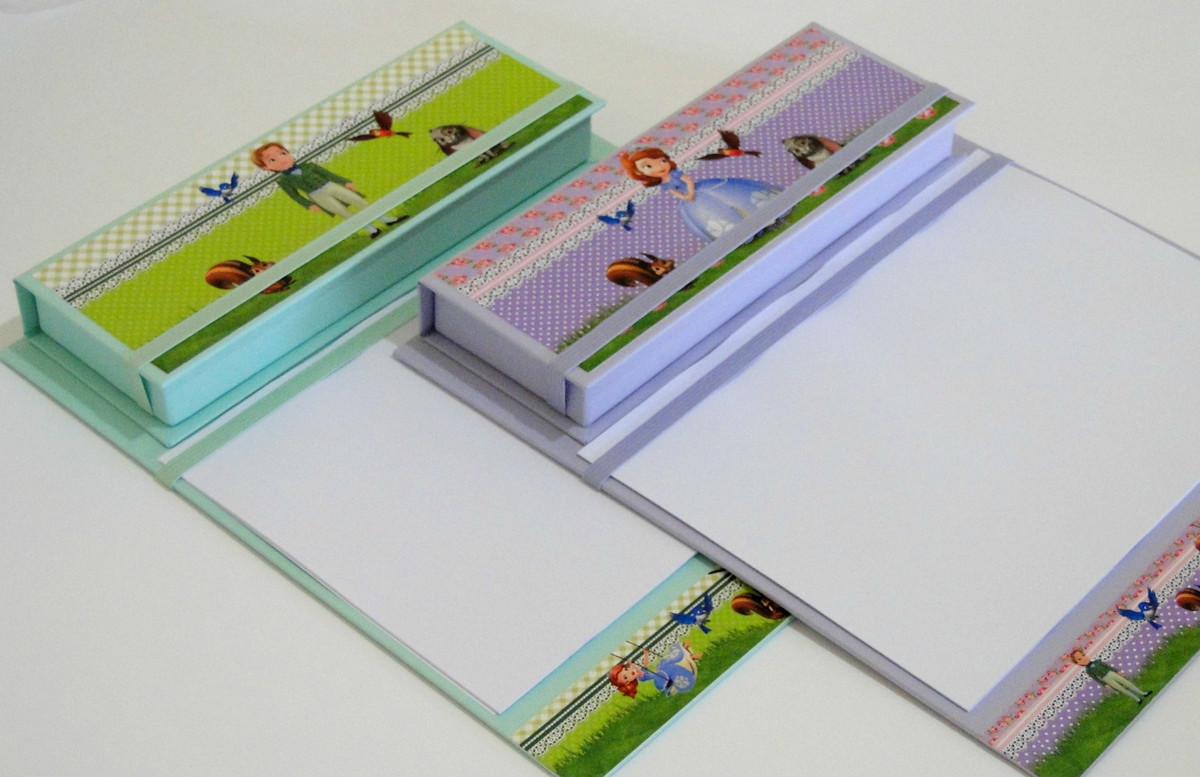 Estes adoráveis risque-rabisques (para folha A5) com estojos personsalizados são confeccionados em cartonagem, revestidos em papel color plus, com personalização na tampa (fazemos em diversos temas). São indicados especialmente para crianças por ser um presente muito útil, criativo e versátil!