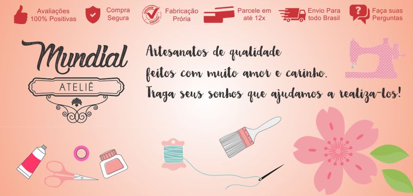 PRODUÇÃO E ENVIO Todos os produtos possuem em seu anúncio o seu PRAZO DE PRODUÇÃO que pode variar de produto para produto e sua quantidade. Esta informação fica sempre na descrição do produto em destaque. Para maiores quantidades consulte o prazo de produção antes da compra pelo espaço de perguntas FORMAS DE ENVIO No momento da compra terá a opção de calculo do frete e você poderá escolher entre as modalidades PAC ou SEDEX. Somos loja com CNPJ, não possuímos loja física mas temos balcão de retirada agendada. Compras realizadas e aprovadas após às 16h serão atendidas no dia seguinte. Pedidos feitos aos sábados, domingos ou feriados serão atendidos no primeiro dia útil subsequente à autorização da administradora do cartão de crédito ou instituição financeira. As entregas são realizadas para todo o território nacional, de segunda à sexta-feira, em horário comercial. Em certas localidades são realizadas também entregas aos sábados, das 8h às 12h, e seu recebimento pode ser realizado por terceiros, como porteiros de condomínios e familiares, desde que estes assinem o comprovante de recebimento. Para sua segurança, recomendamos que antes de assinar o aviso de recebimento entregue pelos Correios, abra o pacote e certifique-se de que não há nenhuma divergência entre o produto comprado e o recebido. Caso perceba qualquer tipo de problema, formalize uma reclamação com o carteiro e negue o recebimento do produto, entrando em contato, logo em seguida, com nossa Central de Atendimento. Esta providência visa lhe assegurar o direito de garantia sob a mercadoria comprada e, caso não seja tomada, um novo produto não será reenviado e tampouco o cliente será reembolsado com o valor pago pelo mesmo. O prazo para entrega de seu produto é a soma do prazo de produção + o prazo dos correios. Desta forma sugerimos que pedidos muito grandes ou próximos e datas comemorativas (Dia das Mães, Namorados, Pais, Aniversários, Natal) sejam realizados com pelo menos 5 dias úteis de antecedências para evitar atrasos. Em algumas localidades, como área militares e áreas com restrição de entrega, seu produto será encaminhado para o centro de distribuição dos correios mais próximo de sua residência, mesmo que você preencha os dados para que o produto seja entregue em sua casa. Verifique se seu endereço esta dentro de algumas destas áreas e fique atento ao número de rastreamento de seu produto, que será disponibilizado no seu painel de compras. TROCAS E DEVOLUÇÕES Para garantir sua satisfação ao comprar em nossa loja virtual a Mundial Ateliê disponibiliza a Política de Trocas e Devoluções de acordo com o CDC (Código de Defesa do Consumidor). 1. DESISTÊNCIA DA COMPRA Se você efetuou a compra através da Mundial Ateliê, recebeu o produto em perfeitas condições e ainda assim não se sentiu satisfeito, você poderá solicitar o cancelamento do mesmo por meio de nossa Central de Atendimento whatsapp ou por e-mail. Ambos serão informados após a compra Mas fique atento para as regras abaixo: 1.1. PRAZO PARA DESISTÊNCIA DE COMPRA Conforme as normas do CDC (Código de Defesa do Consumidor), o cliente que realiza compras através de lojas virtuais goza de até 07 (sete) dias corridos após o recebimento do produto para registrar a desistência da compra. Conforme o artigo 49, o consumidor pode desistir do contrato no prazo de até sete dias corridos a contar de sua assinatura, ou do ato de recebimento do produto ou serviço, sempre que a contratação de fornecimento de produtos e serviços ocorrer fora do estabelecimento comercial, especialmente por telefone ou em domicílio. Parágrafo único - Se o consumidor exercitar o direito de arrependimento previsto neste artigo, os valores eventualmente pagos, a qualquer título, durante o prazo de reflexão, serão devolvidos, de imediato, monetariamente atualizados. 2. DEVOLUÇÃO DA MERCADORIA - A mercadoria deverá ser devolvida pelo cliente, da forma que achar mais conveniente, recomendamos os Correios. - O produto deve ser devolvido em sua embalagem original, acompanhado de todos os acessórios e manuais. - O produto não poderá apresentar qualquer indício de uso. - O cliente deverá enviar por escrito um breve relato sobre o motivo da devolução. - O produto deverá ser remetido para o endereço da embalagem do produto. ATENÇÃO: O produto que não atender às condições exigidas acima, não será aceito como devolução, e automaticamente será remetido de volta ao endereço de origem. Nessas condições, a Mundial Ateliê se reservará no direito de fazer nova cobrança de frete. DICAS PARA UMA ÓTIMA COMPRA ONLINE - Leia sempre com bastante atenção a descrição e a ficha técnica (tamanho, cor, material etc) do produto que você vai comprar. - Conserve sempre a embalagem original do produto, manuais, acessórios, etc, que são necessários caso você queira fazer a troca ou devolução. - Recuse a entrega de um produto que esteja com o lacre rompido. Equipe Mundial Ateliê