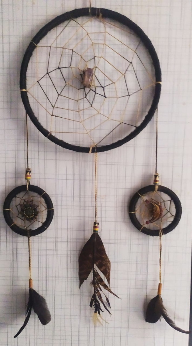 Por se tratar de um produto feito artesanalmente, pode haver pequenas variações nas tonalidades das linhas, penas e pedras utilizadas.