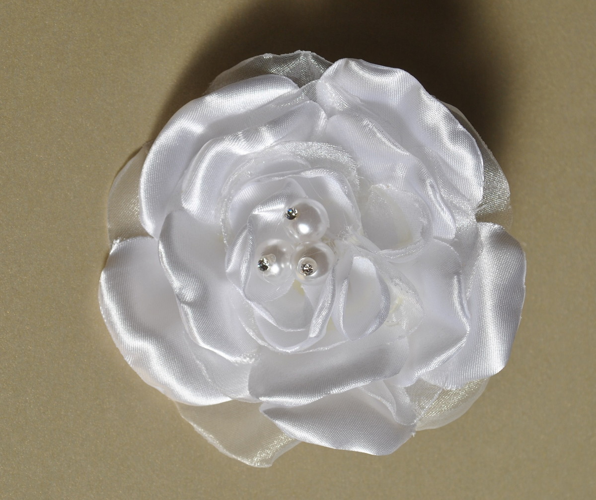 flor de cabelo ou para vestido,em cetim com organza, com milo de perolas e strass. pronta entrega
