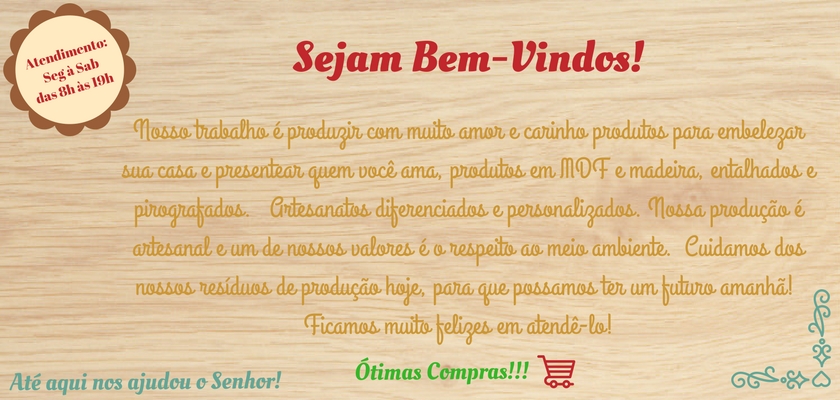 TODO PAGAMENTO É GERENCIADO PELO ELO7 E PELO MOIP PAGAMENTOS COM BOLETO BANCÁRIO E CARTÃO Á VISTA NÃO PAGAM JUROS PAGAMENTOS PARCELADO COM CARTÃO SÃO COBRADOS JUROS PELO MOIP AS ENTREGAS DE TODO PEDIDO SÃO EFETUADAS PELO CORREIOS,QUE É UMA EMPRESA TERCEIRIZADA ,QUE COBRA TAXA DE FRETE DE ACORDO COM O PESO E O TAMANHO DO PACOTE..NÃO SOMOS RESPONSÁVEIS POR ATRASO NA ENTREGA DOS PEDIDO PELOS CORREIOS. ANTES DE REALIZAR SEU PEDIDO UTILIZE O BOTÃO CONTATAR VENDEDOR PARA DEMAIS DUVIDAS. PEDIDOS QUE LEVAM PERSONALIZAÇÃO TROCAREMOS EM CASO DE DEFEITO, NÃO DEVOLVEMOS O VALOR PAGO PARA PRODUTOS PERSONALIZADOS. POR ISSO ENCAMINHAMOS FOTOS DE COMO FICOU A ARTE. CONFIRME O RECEBIMENTO DE SEU PRODUTO EM SEU PEDIDO E ENVIE A AVALIAÇÃO DE NOSSA LOJA E DO NOSSO ATENDIMENTO. NÃO SABE COMO COMPRAR? Siga esse passo a passo: 1- Entre com seu usuário e senha ou cadastre-se agora como comprador no Elo7. 2- Escolha a peça e verifique se está disponível. 3- Verifique o prazo de entrega e o prazo para produção (se não for pronta entrega). 4- Informe o endereço de entrega. 5- Revise e, se o frete agradar, envie o pedido. 6- Faça o pagamento. 7- Aguarde o envio das peças. 8- Ao receber o pedido não esqueça de deixar sua avaliação. COMO COMPRAR MAIS DE UM PRODUTO COM UM FRETE SÓ? Em caso de o cliente desejar comprar mais de 1 item com um só frete,é só seguir este procedimento: 1-Vá até o produto que deseja comprar, e clique em:Comprar este produto. 2-Coloque a quantidade desejada em :Quantidade,e clique em Atualizar 3-No lado esquerdo (embaixo) clique em:Escolher mais Produtos 4-Repita o mesmo processo,até escolher todos itens que deseja 5-Após ter feito isto,clique em :ENVIAR PEDIDO DESTA LOJA. Se não estiver usando o aplicativo, verifique sempre sua caixa de spam Para esclarecer dúvidas, consultar prazo, frete ou informações adicionais, utilize o botão "Contatar vendedor" no lado direito da tela, ao lado do nome da loja no site ou o botão de balõezinhos de diálogo no aplicativo. Utilize o botão "Comprar este produto" apenas quando for finalizar seu pedido e efetuar o pagamento. OBRIGADA ESTAMOS À DISPOSIÇÃO!