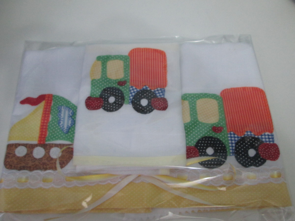 Jogo de fraldas Cremer 52 fios, com aplicação em tecido e bordadas à mão, sendo: