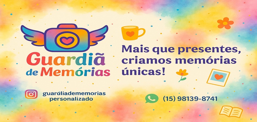 -Produção e Personalização Todos os produtos são feitos sob encomenda, com carinho e atenção aos detalhes. O prazo de produção varia de acordo com o item e será informado no momento do pedido. Produtos personalizados só começam a ser produzidos após a confirmação do pagamento e do envio das informações necessárias pelo cliente. -Trocas e Devoluções Por serem personalizados, não realizamos trocas ou devoluções, exceto em casos de defeito de fabricação. Caso o produto chegue com algum defeito, o cliente deve entrar em contato em até 7 dias corridos após o recebimento para avaliação e substituição. -Atendimento Dúvidas e pedidos podem ser feitos via Instagram ou WhatsApp: Instagram: @guardiadememoriaspersonalizado WhatsApp: (15) 98139-8741 Nosso atendimento funciona de segunda a sexta, das 9h às 18h. - Observação Importante Por serem artesanais e personalizados, pode haver pequenas variações de cores e tamanhos entre os produtos e as imagens ilustrativas.