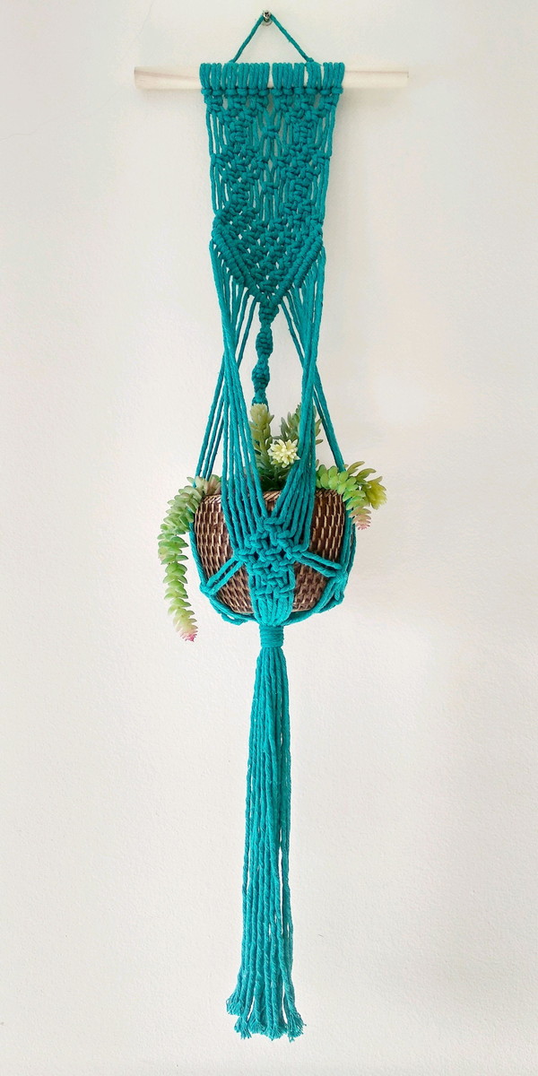 Suporte de plantas artesanal, feito com a técnica macramé.