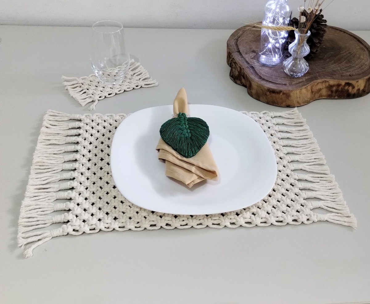 Jogo americano macrame e porta copos macramé.