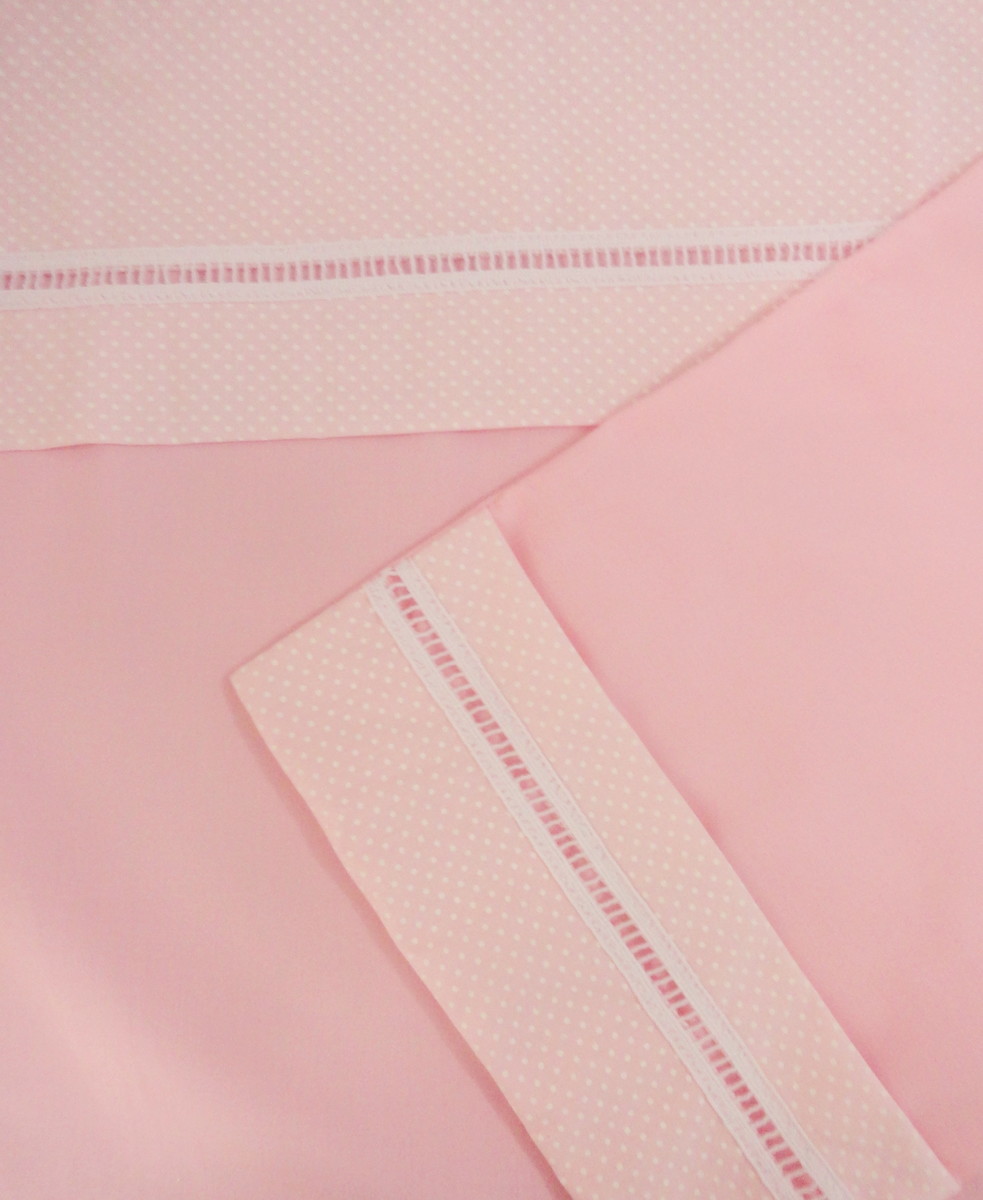 Confeccionado em Percal 200 fios 100% algodão com detalhe em Tricoline.