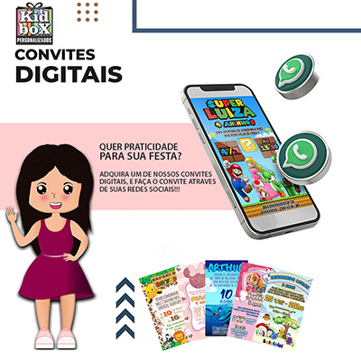 KidboX Personalizados vem para descomplicar a realização da sua festa. Fazemos convites de acordo com o gosto do cliente com criação do início, caso não queira ...ver mais