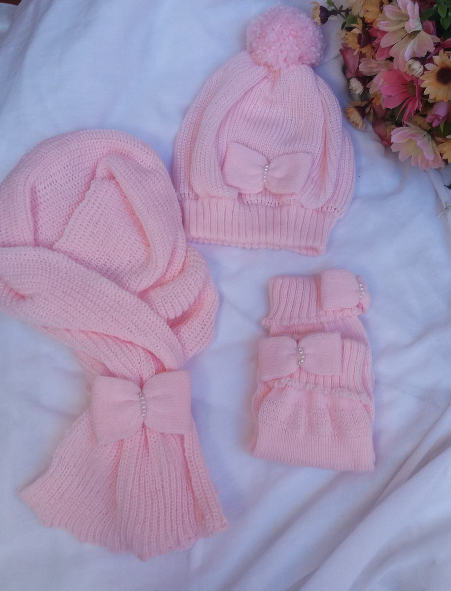 Cachecol / touca e polaina feito em lã própria para maquina de trico