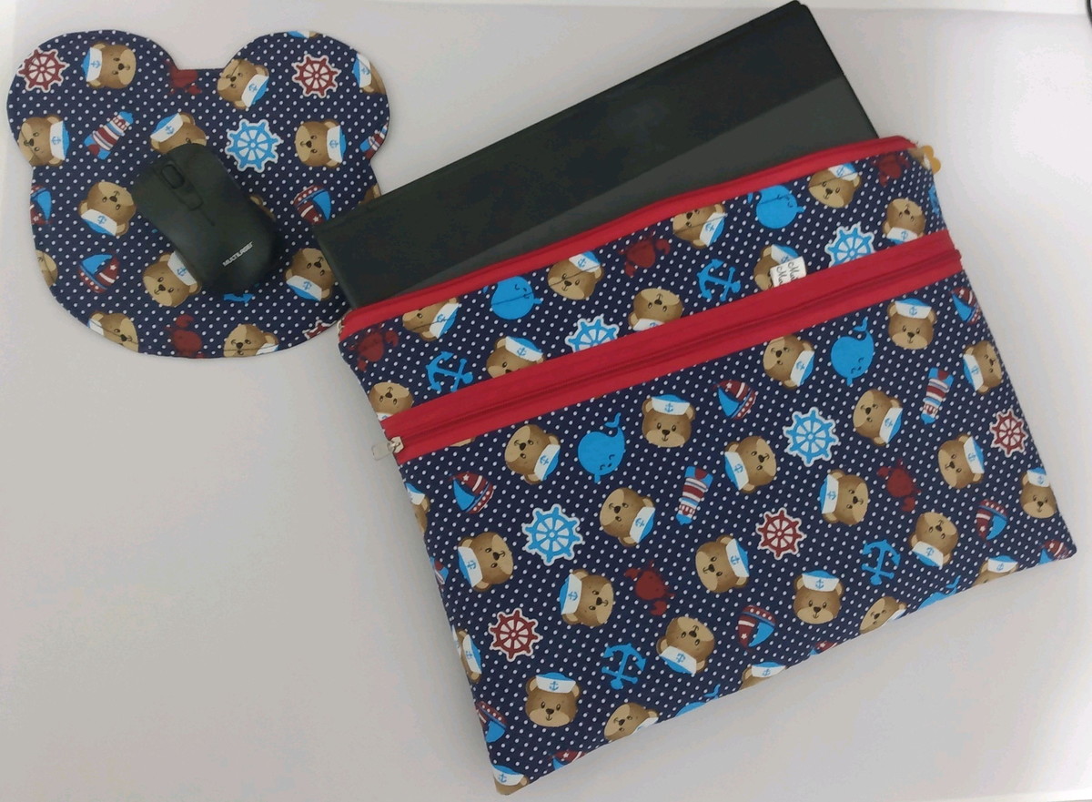 Capa para notebook com bolso frontal para fios e acessórios. Verifique a disponibilidade do tecido.