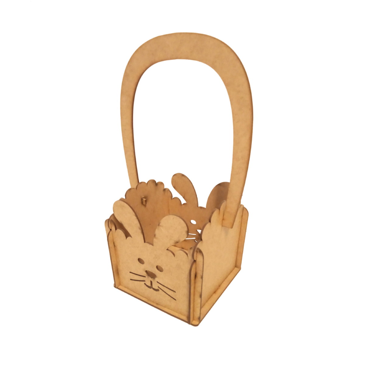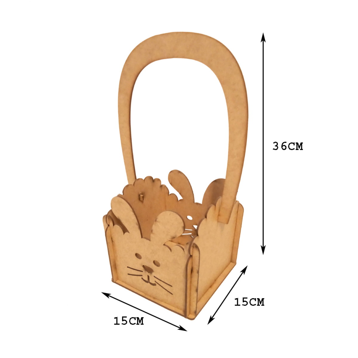 Kit com 3 Cestas mdf com Alça Coelho Páscoa 15lx15cx36a cm