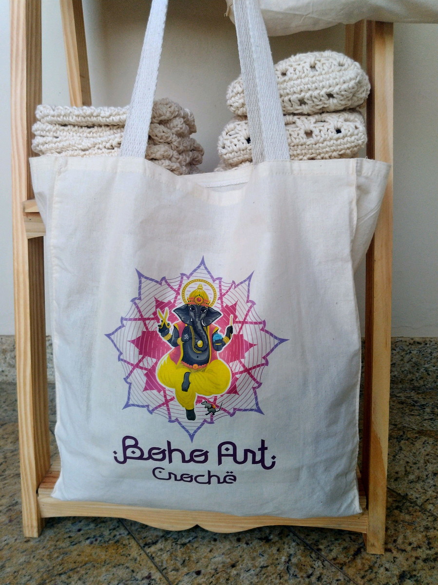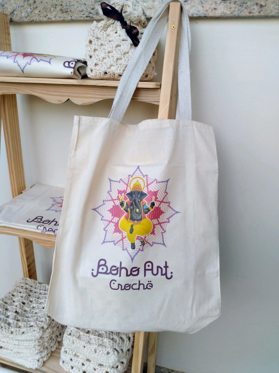1 ecobag personalizada com o logotipo da Marca Boho Art Crochê
